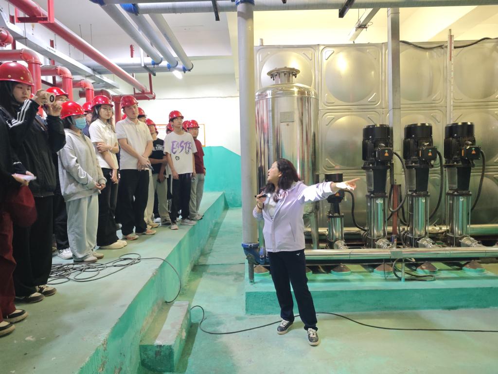 本次见习由建环专业教研室主任杨卫芳带队对公共建筑、居住建筑的供暖系统、热交换站、消防泵房、消防水系统、生活给排水系统、中央空调系统、地下车库通风及排烟系统等进行了系统性讲解,使学生对于建环专业有了更深入的认识。同时,实习过程中,要求学生注重实习安全,正确佩戴安全帽,老师讲解细致,学生学习态度认真。
