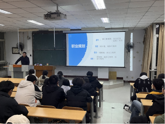 专业讲解结束后,张永才老师以“你是谁?你在哪?你的梦?”为主题,开展新生成长规划专题引导。他先围绕“你是谁”,引导新生思考身份转变——从高中生到土木工程专业学子,需明晰“未来工程建设者”的责任,还让新生分享对“土木工程人严谨品格”的初认知;接着聚焦“你在哪”,结合校园学习生活,讲解如何适应大学自主学习模式,利用实验室、图书馆等资源夯实力学基础,同时提醒关注专业实践机会;最后探讨“你的梦”,结合土木工程行业发展,鼓励新生将个人目标与基建领域需求结合,比如制定“掌握CAD技能”“参与结构设计竞赛”等阶段性目标,助力新生锚定成长方向。