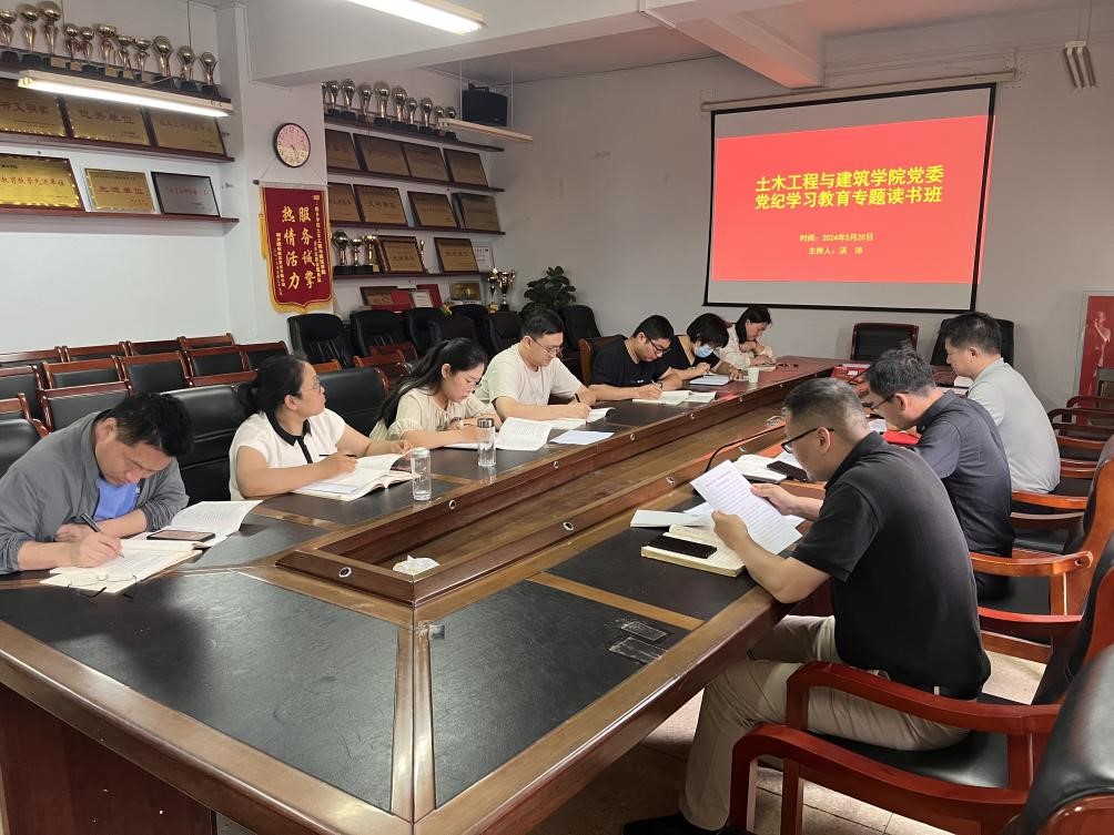 院党委书记汤沛作开班讲话,强调了党中央在全党集中开展党纪学习教育的重大意义,对学院领导班子,党委委员及各支部书记参加读书班提出三点要求,一是提高政治站位,增强开展党纪学习教育的高度自觉。二是把握精髓实质,确保《条例》在土建学院落实落地。三是周密组织实施,确保学习教育各项任务圆满完成。随后,读书班开展领导领学和专题学习辅导。