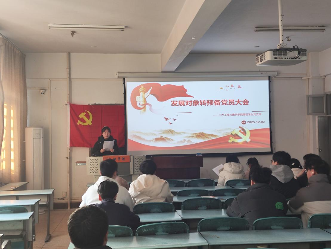 为了规范党员发展,强化支部建设,凝聚思想共识。2025年12月2日,betway西汉姆联官网学生第四党支部在教室A06-405召开接收预备党员与预备党员转正大会,支部党员、发展对象及入党积极分子代表参会。本次大会严格遵循党组织发展程序,既是对党员发展工作的规范推进,也为支部注入新活力、凝聚新力量。