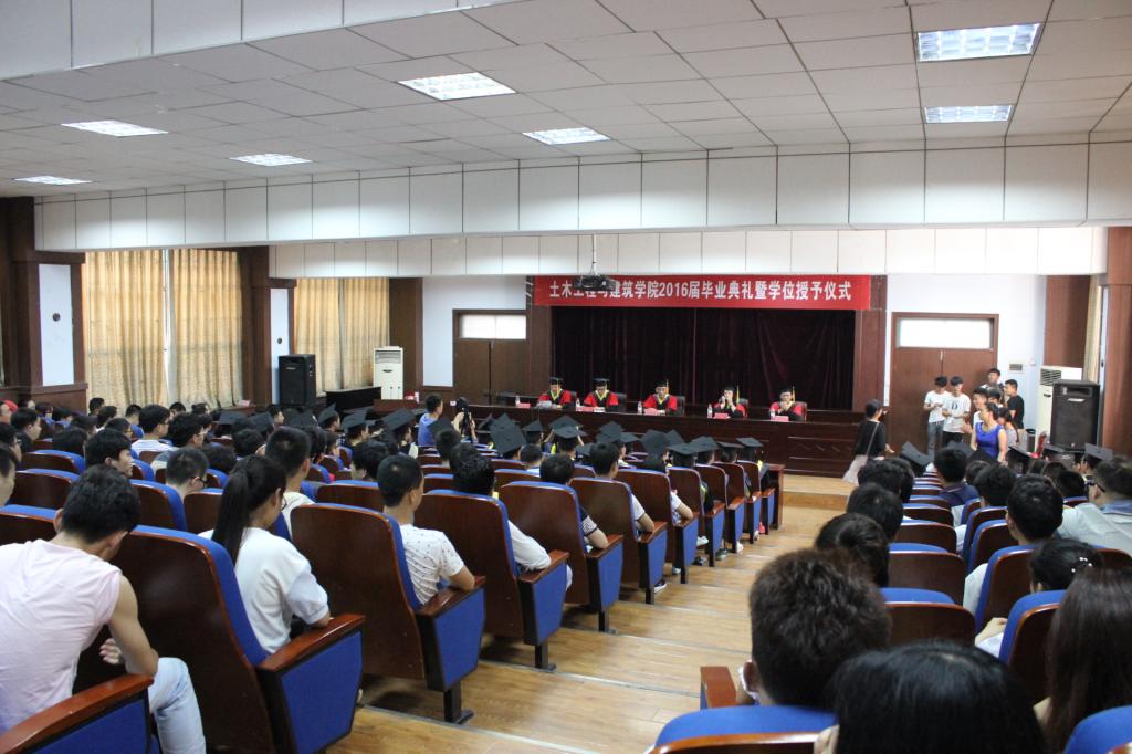 典礼在庄严的国歌声中开始,首先由我院党总支书记黄家骏宣布我院卓越毕业生3名,省级优秀毕业生12名,校级优秀毕业生50名人员名单;然后由副院长马芸宣布土木工程专业173名,交通工程专业90名,建筑环境与能源应用工程96名获得工学学士学位人员名单;接下来进行学位授予仪式,一个个身穿学士服的优秀毕业生从各位领导手中接过学位证书,接受拨穗礼并合影留念。之后,我院教师代表杨翠娜老师,优秀毕业生代表-卓越毕业生刘杰、我院往届优秀毕业生代表河南凯达建设刘国伟总经理分别发言,寄语毕业生前程似锦,会场掌声不断。最后,院长赵磊为大家做了重要讲话,希望毕业生们运用在校所学的知识和技能,尽快融入社会实践,完善自我、提升能力、服务社会、报效国家,他还表示,母校是毕业生永远的后盾,希望大家时刻心系母校,常回家看看。