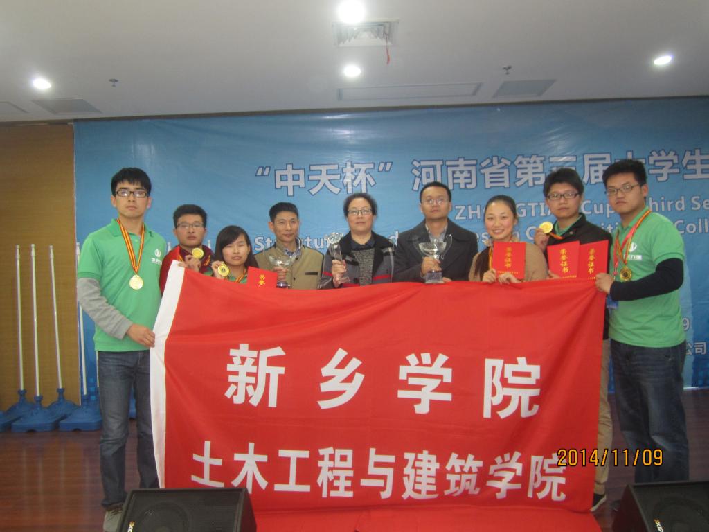 11月7-9日,“中天杯”河南省第三届大学生结构模型设计竞赛在河南工业大学顺利落幕。我校土木与建筑工程学院选派的两支代表队与来自郑州大学、河南大学、河南工业大学、华北水利水电大学等20所高所的39支队伍展开了为期三天的激烈角逐,最终以第三、第四名的成绩荣获大赛一等奖两项,为我校争得了荣誉。新乡学院、河南工业大学、华北水利水电大学获大赛优秀组织奖,本次大赛的第一、二名分别被河南工业大学和郑州大学参赛队获得。