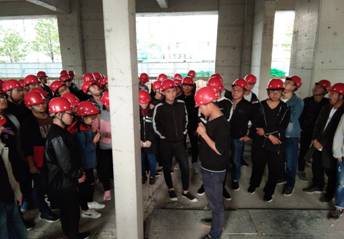 此次实习由四位老师带队,分别到常青藤住宅小区、新乡学院图书馆、牧野大厦、平原体育馆等四个施工现场进行认知学习。同学们统一着装,佩戴安全帽,听从指挥,有序进入现场,在带队老师的介绍以及施工方相关人员的讲解过程中,同学们专心致志,记录着现场负责人的介绍。