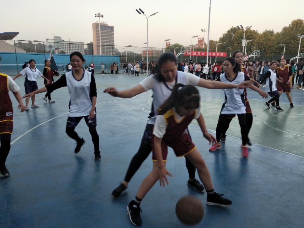 此次篮球联赛启动仪式开始,开场舞的表演者们热情似火,在学校领导慷慨激昂的讲话之后,篮球联赛正式开始。比赛分上、下两半区,AB两组为上半区,CD两组为下半区,两个半区分别决出胜者,进行晋级名额的争夺。 篮球比赛开始之前,女篮队员们积极的进行热身运动比赛中,各个球员奋力的在球场上挥洒着自己的激情,双方队员互不相让,难分胜负,场面一度十分胶着。整个比赛过程中,裁判员秉公执法,严肃认真,尽自己最大的努力判决好每一个球,保障了比赛的公证性、连续性和观赏性。双方队员也顾大局识大体,服从裁判,做到赛出风格赛出水平。尽管我院没有获得此场比赛的胜利,但是女子篮球队中每个球员用心拼搏,一路奋勇运动员风采,使此场篮球赛格外绚丽多彩,这同样是一种成功。