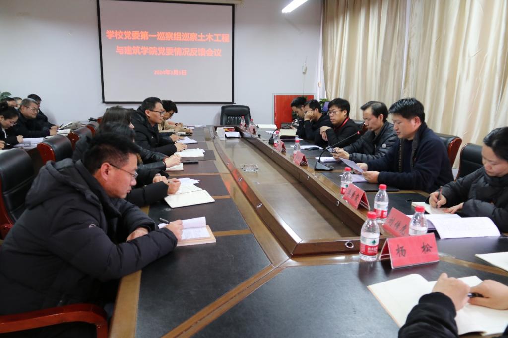 按照学校党委统一工作安排部署,3月5日下午,学校党委第一巡察组巡察betway西汉姆联官网党委情况反馈会议在A09三楼会议召开。党委巡察工作领导小组成员、校党委巡察办主任郭明进同志,校纪检监察二室主任毛克乐同志,第一巡察组组长张胜利同志,副组长李秀霞同志,成员沈敬萍同志、刘传虎同志、杨松同志及我院全体教职工参加会议。会议由院长潘林同志主持。