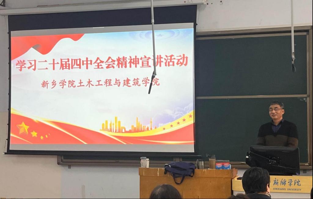 本次宣讲邀请马克思主义学院副教授万庆老师作为主讲嘉宾,围绕党的二十届四中全会的重大政治意义、核心部署要求,结合学科的行业属性与人才培养方向展开解读:既从宏观层面阐释了全会对推进国家治理体系和治理能力现代化的战略规划,也从微观角度链接专业实际——引导同学们思考“如何提升专业能力,服务城乡建设、助力高质量发展”,让抽象的精神内涵转化为可感知的实践方向。