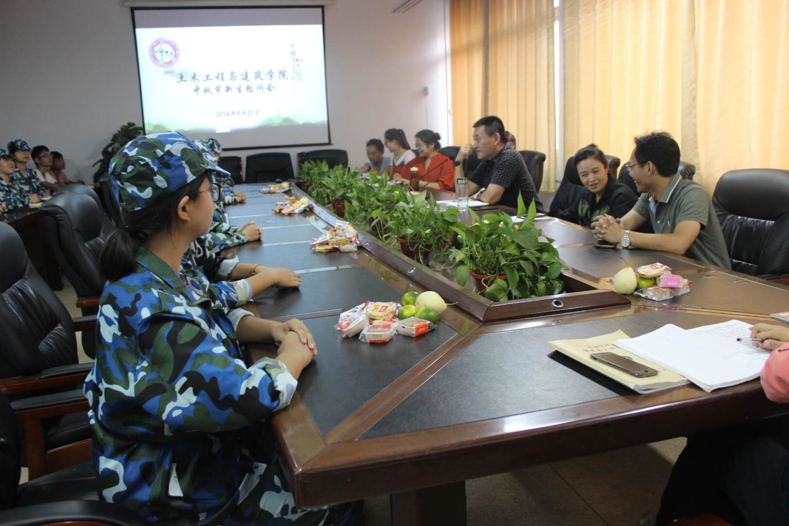 桂香千里,中秋意浓! 9月21日下午3点,betway西汉姆联官网在学院会议室召开迎新慰问座谈会。学院领导、老师与18级新生共度佳节,共话人生,送达学院最真挚的祝福,让远离家乡的学子们体会到家的温暖和关怀。出席慰问座谈会的领导有土建学院党总支书记黄家骏教授、党总支副书记和存龙老师 、副院长马芸副教授、副院长潘林副教授及全体辅导员老师。座谈会由团总支书记毛戎老师主持。